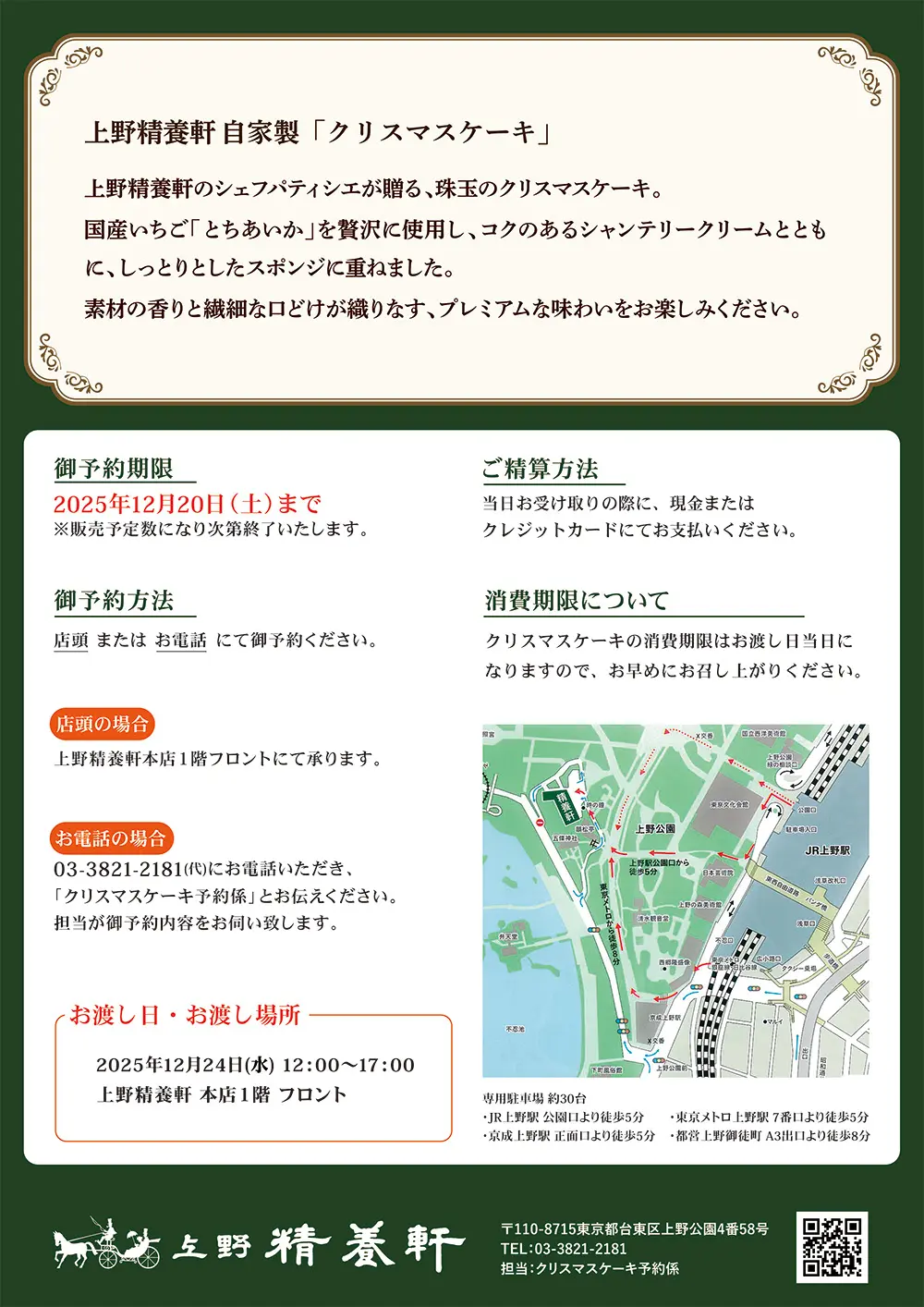 お電話の場合:03-3821-2181(代) 「クリスマスケーキ予約係」とお伝えください。
